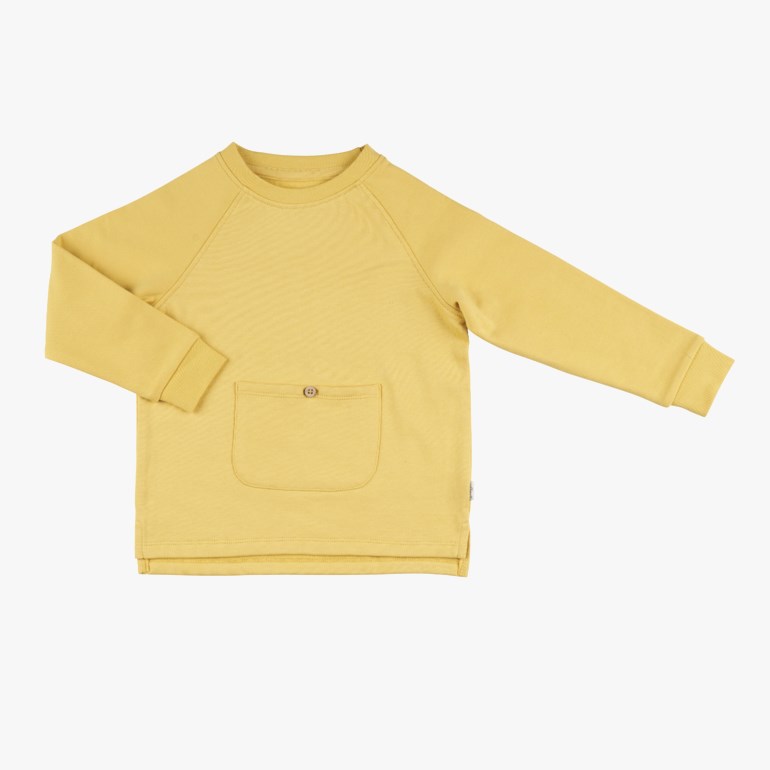 Myk og behagelig collegegenser laget av 100% økologisk bomull. Perfekt hverdagsplagg til lek, kos og aktivitet med kengurulomme i front.