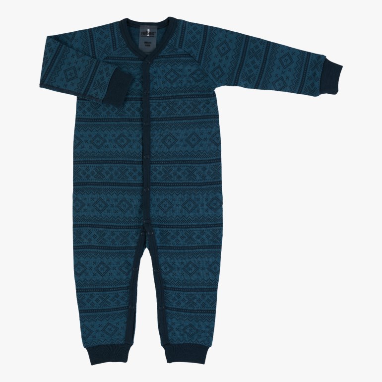 Nordlys er vår mest populære mønstrete heldress med jaquardstrikk laget av 100% merinoull. 100% myk og behagelig merinoull. Materialet varmer når det er kaldt og kjøler kroppen når det er varmt. Transporterer bort fuktighet og tørker hurtig. Trykknapper i front og ned i begge beina for enkel av- og påkledning. Produktet er Økotex-sertifisert. Ullen er RWS-sertifisert & mulesing-fri for en mer bærekraftig produksjon. Leveres i 2 fargevarianter. Str. 56 cm 1 mnd – 98 cm 3 år. Materiale: 100% merinoull. Vaskeanvisning: Maskinvask 40 grader, ullprogram. For å ivareta både plagget og miljøet så godt som mulig anbefaler vi å minimere antall vask så mye man kan. Vask gjerne av flekker med en klut og heng plagget til lufting når nødvendig. Dette vil forlenge levetiden på plagget, minimere energibruk samt skåne miljøet for unødvendig utslipp.