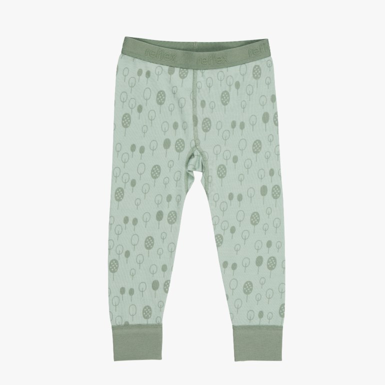 Helprintet ull-longs laget av bambusviskose på innsiden og merinoull på utsiden. Denne kombinasjonen av materialer beskytter sensitiv og tørr hud mot irritasjon samtidig som man får godt utbytte av ullens gode egenskaper. Alle hals/ermer/fotåpninger i Nysnø-serien er laget av bomull slik at man unngår ull inn mot barnets hud.