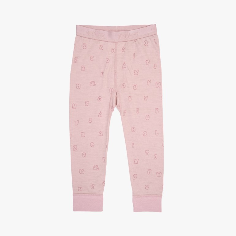 Helprintet ull-longs laget av bambusviskose på innsiden og merinoull på utsiden. Denne kombinasjonen av materialer beskytter sensitiv og tørr hud mot irritasjon samtidig som man får godt utbytte av ullens gode egenskaper. Alle hals/ermer/fotåpninger i Nysnø-serien er laget av bomull slik at man unngår ull inn mot barnets hud.
