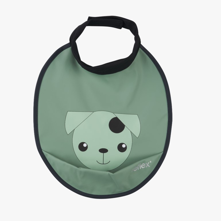 Praktisk smekke i PU-materiale med figurprint. Myk og elastisk halsåpning med justering for god komfort.