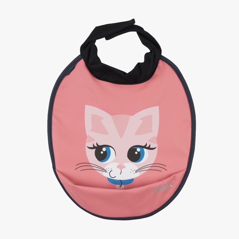 Praktisk smekke i PU-materiale med figurprint. Myk og elastisk halsåpning med justering for god komfort. Lommen i front fanger opp søl og matrester.