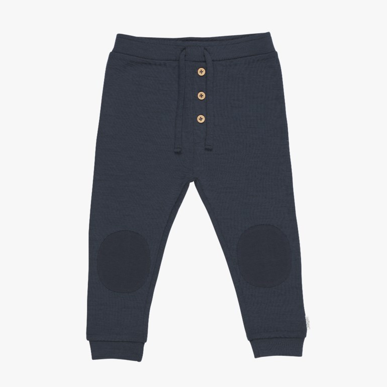 Myk og behagelig joggebukse til de minste i deilig merinoull. Passer både som hverdagsplagg og mellomlag. Buksen har en behagelig elastikk i livet. Snøring og knapper i front er kun for dekorasjon.