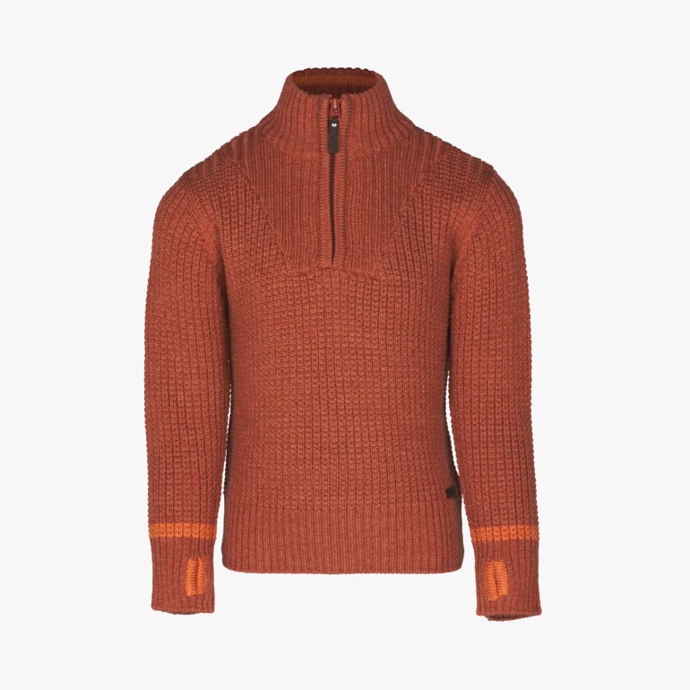 Varm og myk strikket ullgenser med half-zip, perfekt som mellomlag eller hverdagsplagg. Produsert i en ekstra myk ullblanding som gir en varm og lun kvalitet, perfekt til hverdagsbruk. Genseren har høy hals, half-zip i front og tommelhull og passer godt som mellomlag under regntøy, parkdress og ski-tøy, da ullens egenskaper bidrar til god ventilasjon og transport av fuktighet. Fungerer også perfekt til lek og kosetid.