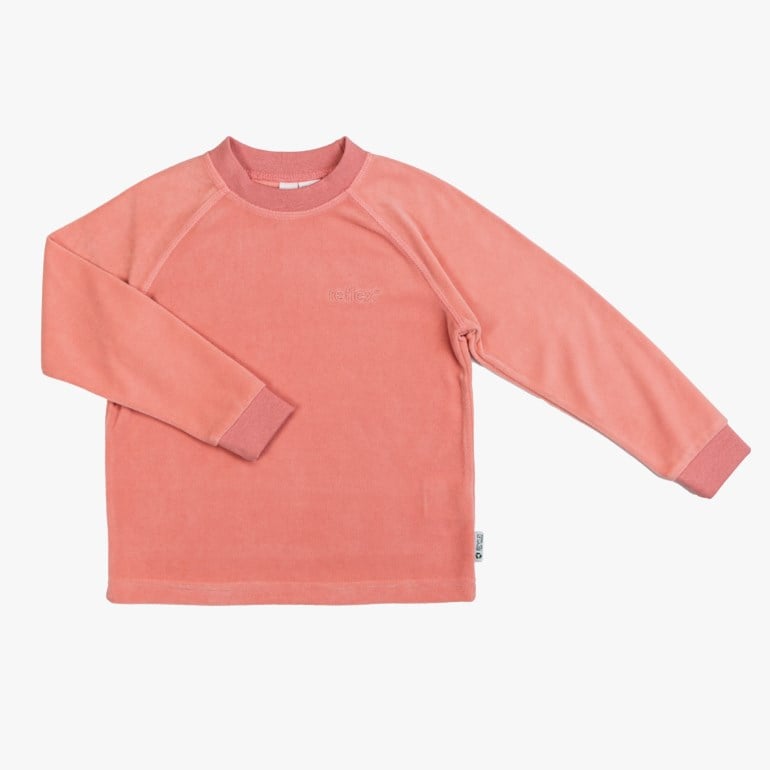 Myk og behagelig ensfarget genser laget av 100 % sertifisert resirkulert polyester.
