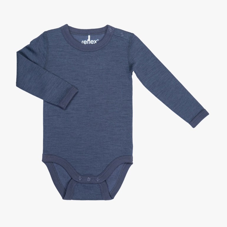 Ensfarget body laget av myk og behagelig ull og økologisk bomull - perfekt for alle, også de med sensitiv hud. Snøfall-serien passer også godt på dager hvor det ikke er fullt så kaldt, og kan med fordel brukes hele året.