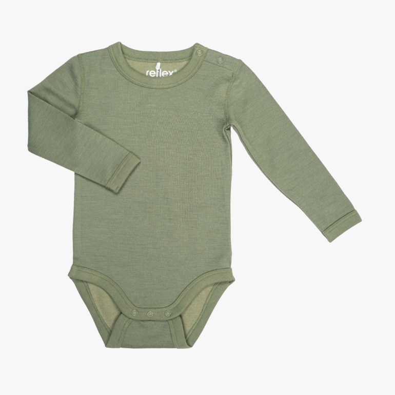 Ensfarget body laget av myk og behagelig ull og økologisk bomull - perfekt for alle, også de med sensitiv hud. Snøfall-serien passer også godt på dager hvor det ikke er fullt så kaldt, og kan med fordel brukes hele året.