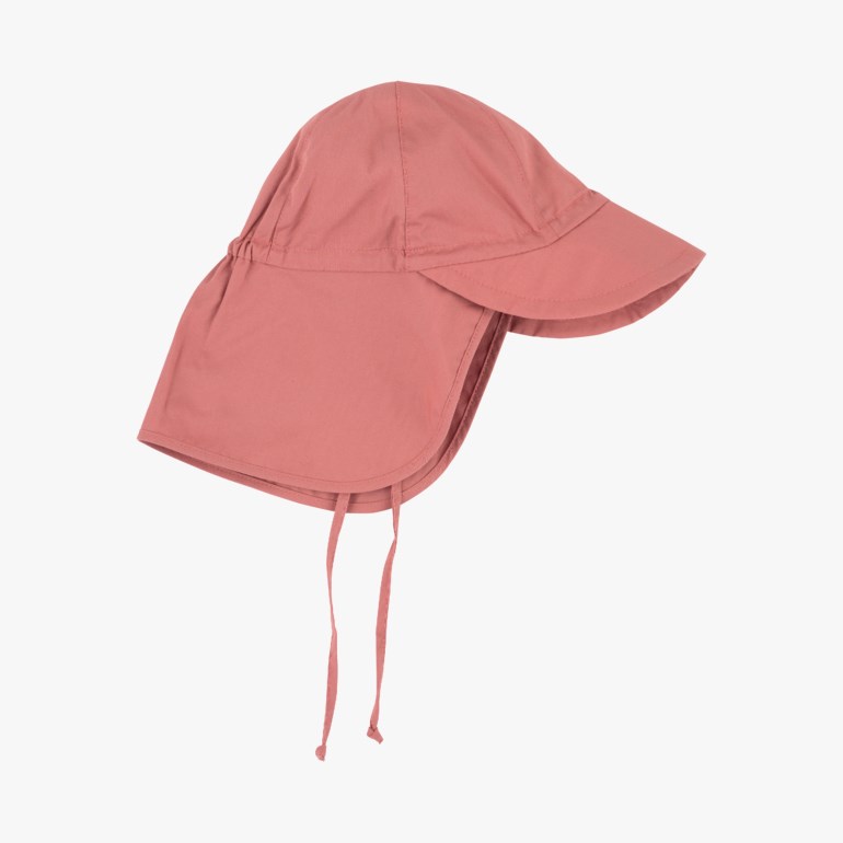 Med øreklaff og knyting som gjør at solhatten sitter ekstra godt på hodet.