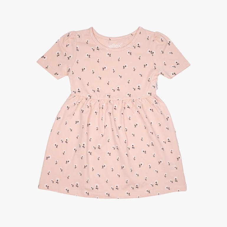 Sommerlig, kortermet kjole til hverdag og fest, laget av myk og økologisk bomull.