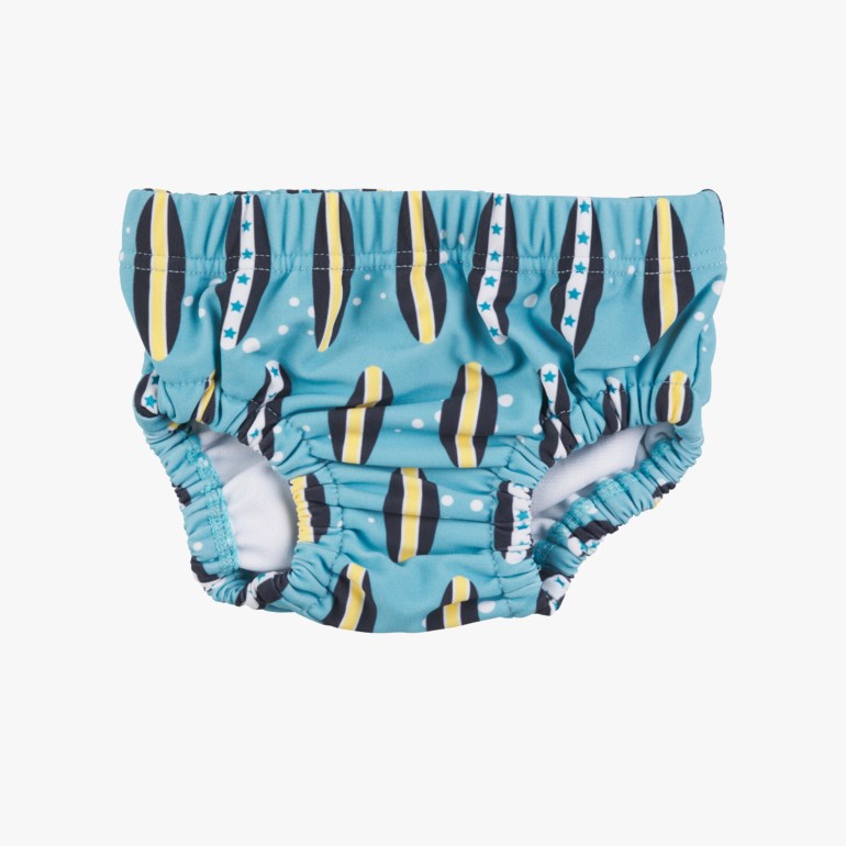 UV-beskyttende badebukse for de minste laget av resirkulert polyamid. Innslag av elastan gjør badebuksen ekstra fleksibel og behagelig. Elastikk i livet og i benåpning for best mulig passform. Med plass til å ha bleie under. Badebuksen har kraftig solfilter. Str. 62-68cm 3-6 mnd – 98-104cm 3-4 år. Materiale: 80% resirkulert polyamid, 20% elastan. For å ivareta både plagget og miljøet så godt som mulig, anbefaler vi å minimere antall vask så mye man kan. Vask gjerne av flekker med en klut og heng plagget til lufting når nødvendig. Dette vil forlenge levetiden på plagget, minimere energibruk samt skåne miljøet for unødvendig utslipp.