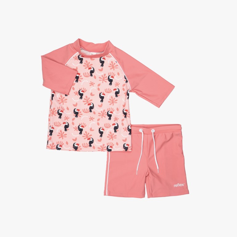 • Overdel med korte ermer og tilhørende badeshorts med snøring i livet. • Navnelapp i både bukse og overdel. • Blokkerer minst 98% av solens UVA- og UVB-stråling. • Solfilter UPF 50; beskyttelsesklassifisering EXCELLENT • Plagg med UPF solfilter og solbeskyttende egenskaper, er underlagt «PVU-forordningen» EU 2016/425 og er derfor både designet, produsert og testet ihht AS 4399:2020. • Str. 86-92 cm 18-24 mnd – 134-140 cm 9-10 år. • Materiale: 80% resirkulert polyamid, 20% elastan. • For å ivareta både plagget og miljøet så godt som mulig, anbefaler vi å minimere antall vask så mye man kan. Skyll plagget i rikelig med ferskvann og la det lufttørke i skyggen. Unngå å la det tørke direkte i sollys. Dette vil forlenge levetiden på plagget, minimere energibruk samt skåne miljøet for unødvendig utslipp og overforbruk.