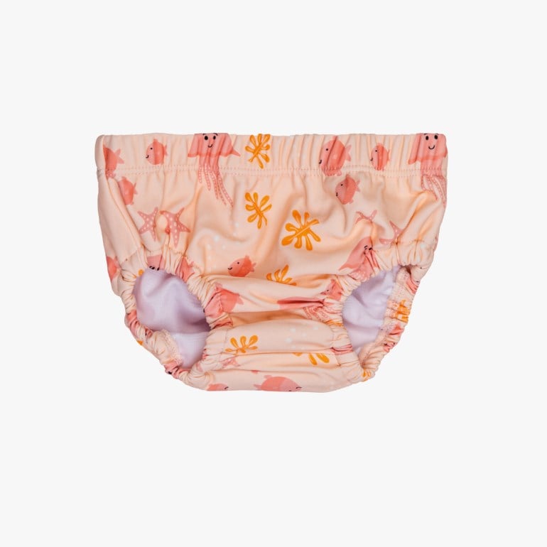 Tjøme UV-badeshorts er laget spesielt for små barn som trenger god solbeskyttelse og ekstra bevegelsesfrihet i vann og på land. Shortsen er sydd i et mykt og elastisk materiale med 80 % resirkulert polyamid, og har god plass til bleie under – uten at det går på bekostning av passform.