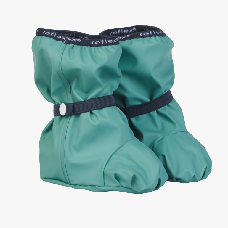 Regnsokker til de minste i myk PU-kvalitet med sveisede sømmer og fleecefôr laget av resirkulert materiale.