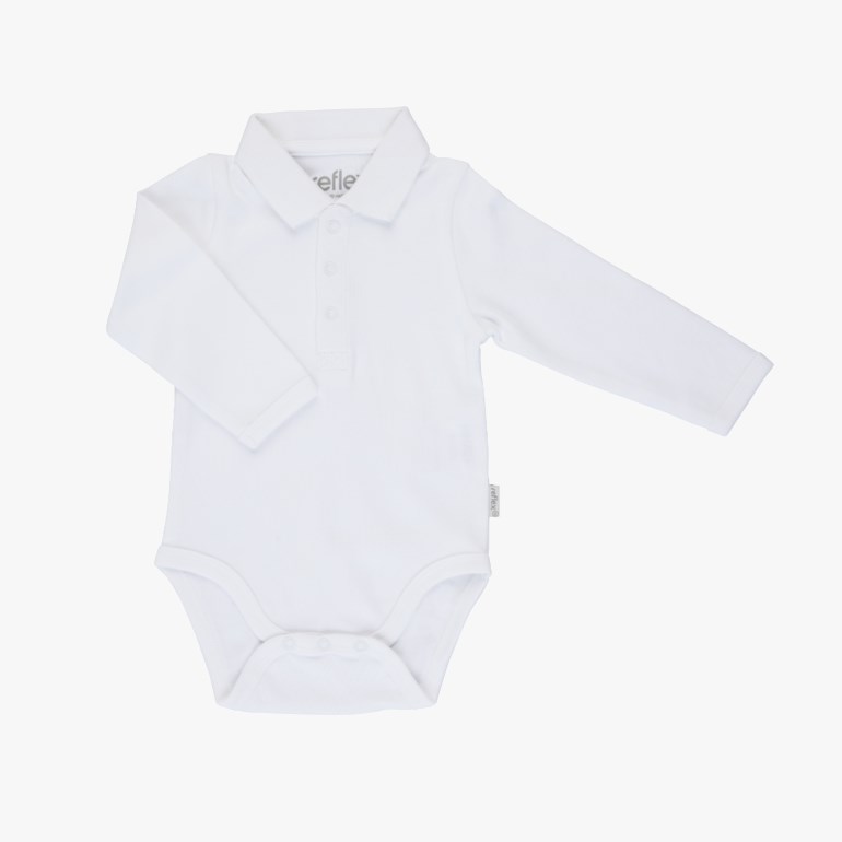 Myk og behagelig body med krage og trykknapper laget av 100% økologisk bomull.