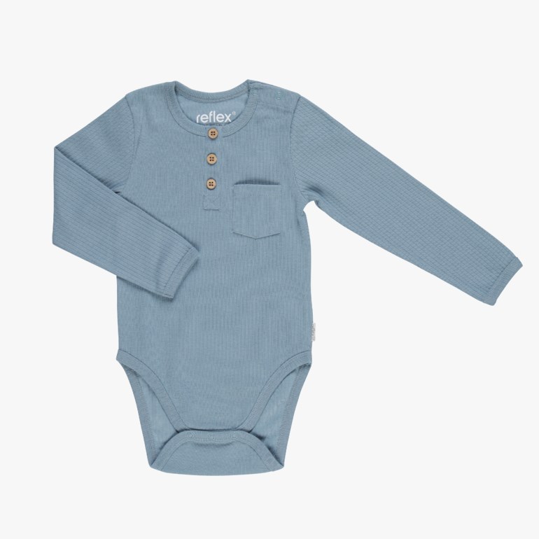 Stilig ribbestrikket body med brystlomme i myk og deilig økologisk bomull.