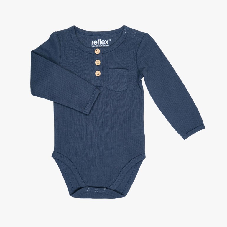 Stilig ribbestrikket body med brystlomme i myk og deilig økologisk bomull.