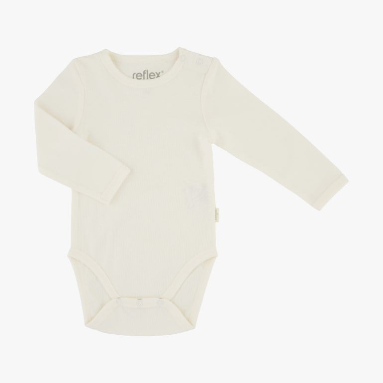 Åpning med trykknapper på skulder og i skrittet. Finnes med og uten print. GOTS & Økotex-sertifisert. Str 50cm Nyfødt – 92cm 2 år. Materiale: 100% økologisk bomull.