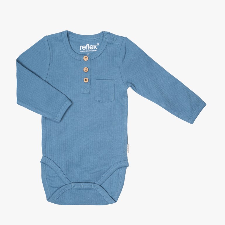 Myk og behagelig ribbestrikket body i økologisk bomull med brystlomme.