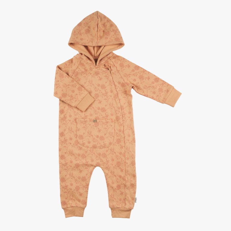 Printet heldress med hette, lomme og åpning i front, laget av myk, økologisk bomull. Åpning med glidelås og trykknapper i front. Dekorativ lomme i front. GOTS & Økotex-sertifisert produkt uten skadelige kjemikalier eller allergifremkallende stoffer. Str 56 cm 1 mnd – 92 cm 2 år. Materiale: 100% økologisk bomull. Vaskeanvisning: Maskinvask 30 grader. For å ivareta både plagget og miljøet så godt som mulig, anbefaler vi å minimere antall vask så mye man kan. Vask gjerne av flekker med en klut og heng plagget til lufting når nødvendig. Dette vil forlenge levetiden på plagget, minimere energibruk samt skåne miljøet for unødvendig utslipp.