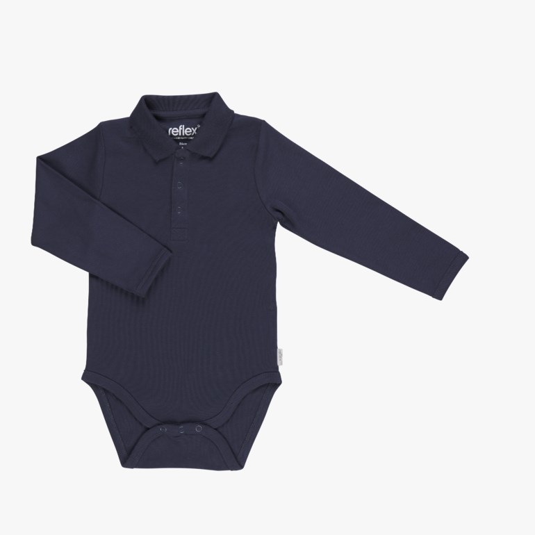 Myk og behagelig body med krage og trykknapper laget av 100% økologisk bomull.