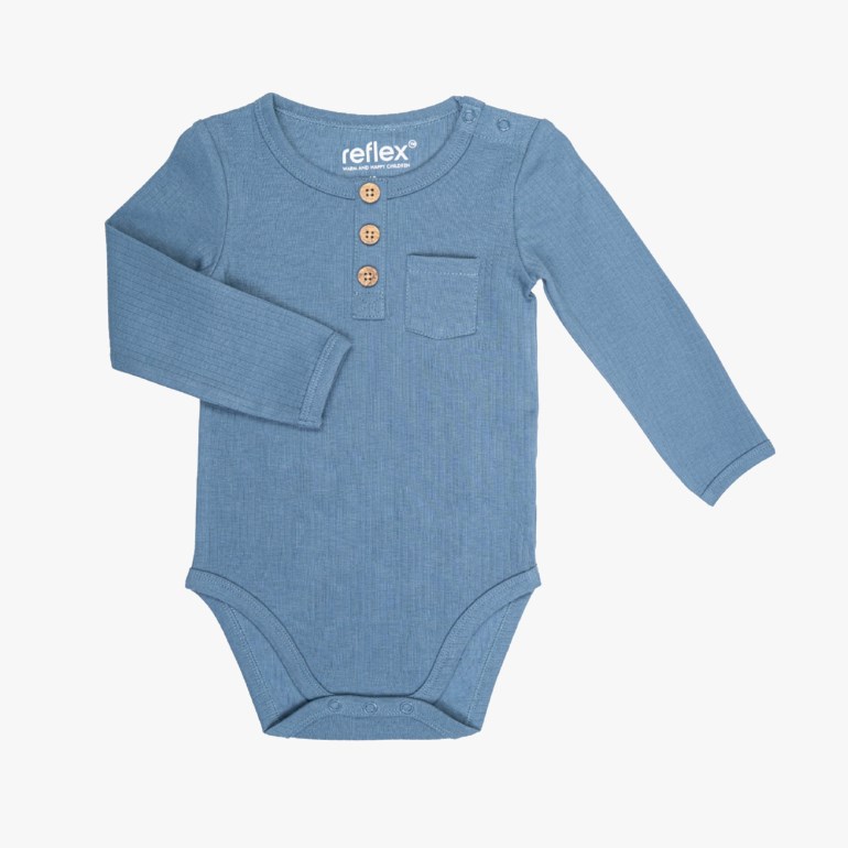 Stilig ribbestrikket body med brystlomme i myk og deilig økologisk bomull.