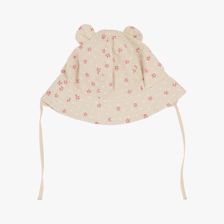 Med øreklaff og knyting som gjør at solhatten sitter ekstra godt på hodet.