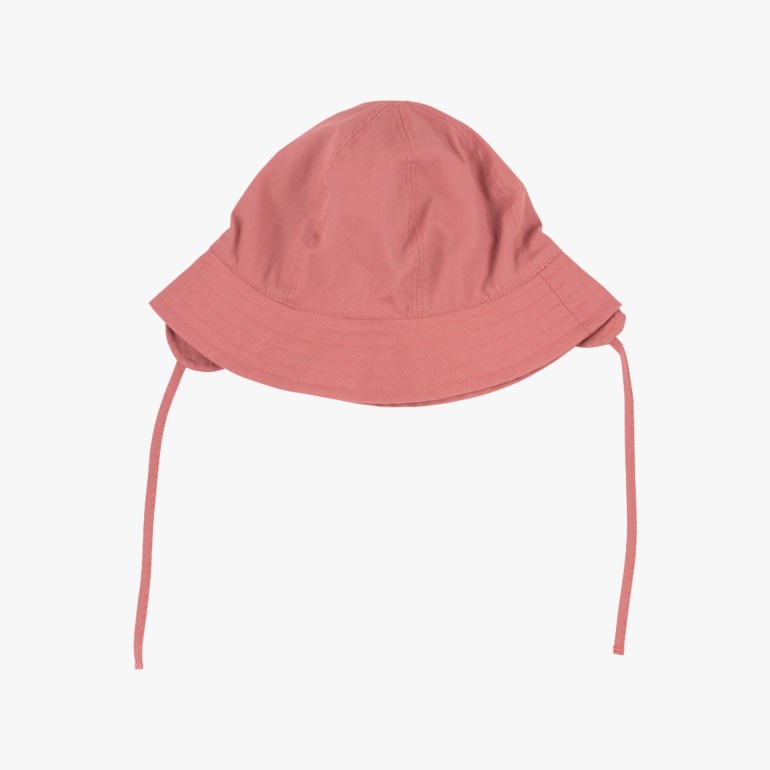 Med øreklaff og knyting som gjør at solhatten sitter ekstra godt på hodet.