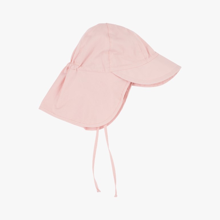 Med øreklaff og knyting som gjør at solhatten sitter ekstra godt på hodet.