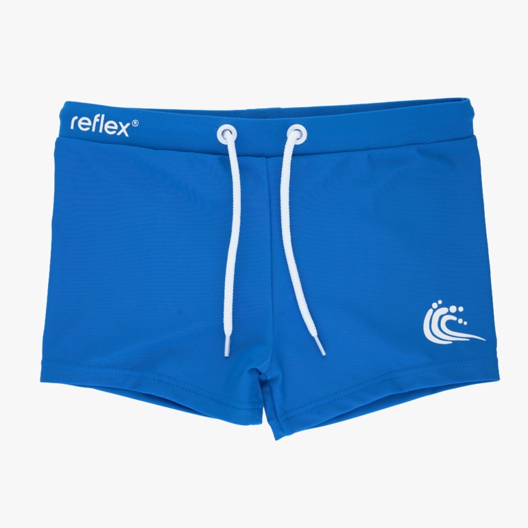 UV-beskyttende ensfarget badebukse med elastikk og snøring i livet.