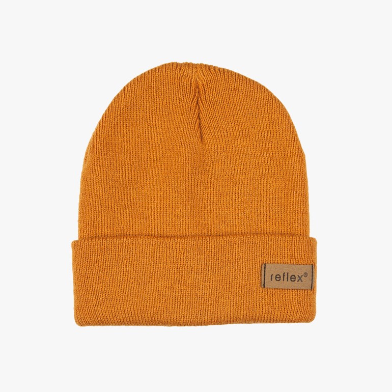 Tøff beanie med brettekant og logo i imitert skinn fra Reflex.
