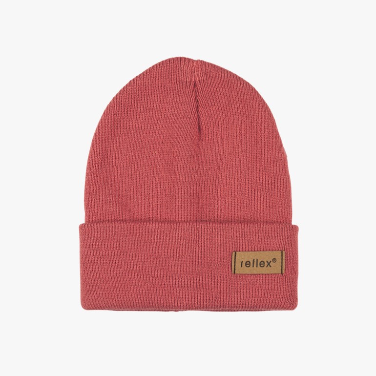 Tøff beanie med brettekant og logo i imitert skinn fra Reflex.