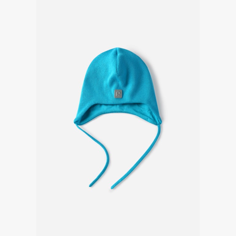 Denne mellomsesongluen for småbarn holder hodet varmt selv om det blåser. Materialet er elastisk bomullsstrikk, og luen har vindtette ørepartier. Fås i flere friske farger.