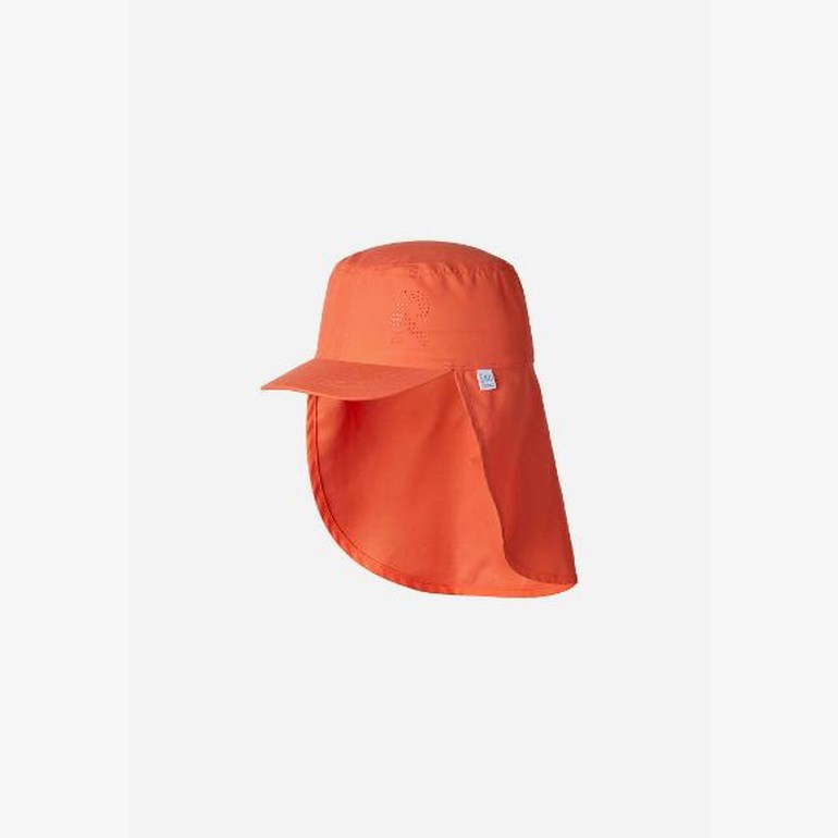 En hatt er et viktig tilbehør i solen. Denne lettere varianten uten for er laget i et elastisk materiale med solfaktor UV 50pluss. Skjermen dekker ansiktet, mens bremmen bak holder solen unna nakken. Farge orange. Str 48-54.