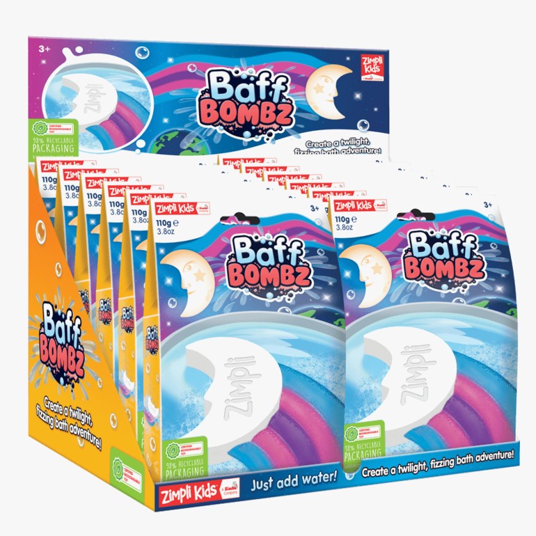Gjør badetid magisk med Moon Baff Bombz fra Simba Leker! La den måneformede badebomben sakte flyte i badekaret og se på når den avgir et spor av regnbuefarger. Alle Baff Bombz er biologisk nedbrytbare, snille mot huden, ikke forårsake dreneringsstopp, lett å rengjøre og gir ingen flekker.