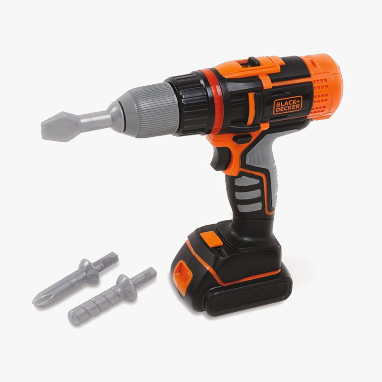 Trenger du hjelp til å bore noe? Ta det med ro, med Smobys elektroniske boremaskin med Black + Decker-design, løser den lille snekkeren alt! Drillen er batteridrevet.