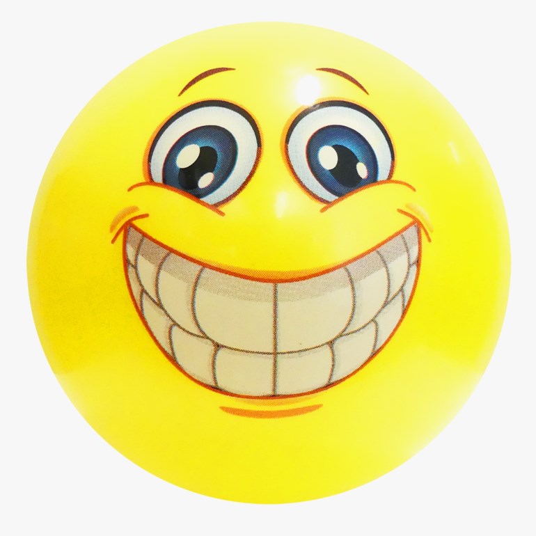 Ball i PVC-plast med morsomt motiv av et ansikt/emoji med stort smil. Perfekt til lek både på strand og i hagen. Måler 24 cm.