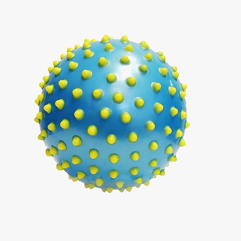 Fargerik ball for barn, som er lett i vekt og enkel å gripe tak i på grunn av sine myke pigger. Måler 10 cm.