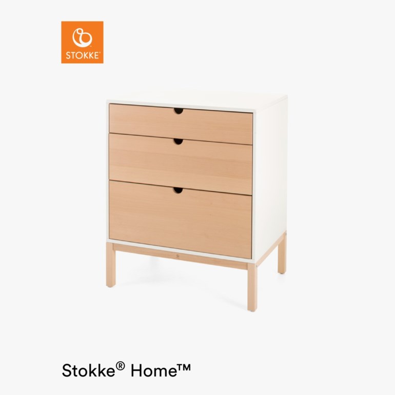 NB! Denne kommoden kommer i to deler og begge deler må kjøpes for komplett kommode (del 1 av 2 og del 2 av 2). De romslige skuffene med myk lukking byr på god plass og gir lett tilgang til tingene man trenger, og man kan hele tiden holde øye med babyen. Avhengig av hvordan du innreder rommet, kan du komme til kommoden med stelleenhet både fra siden og foran. Den åpne plassen til føttene dine under kommoden bringer deg nærmere babyen når du skal stelle og kose med den. Den skandinaviske designen sammen med de slitesterke materialene gjør dette til et klassisk stykke møbel som vil vare i mange år. Materialer : Vanlig bøk Formaldehydredusert MDF-plate. Mål (lengde x høyde x bredde) i cm/in : 73x88x50/28.5x34.5x20. Vedlikehold: Tørk av med en ren, fuktig klut, tørk bort overflødig vann med en tørr klut. Fuktighet kan få lakken til å sprekke. Vi anbefaler ikke bruk av vaskemidler eller mikrofiberklut. Fargene kan endre seg hvis kommoden blir eksponert for sollys.