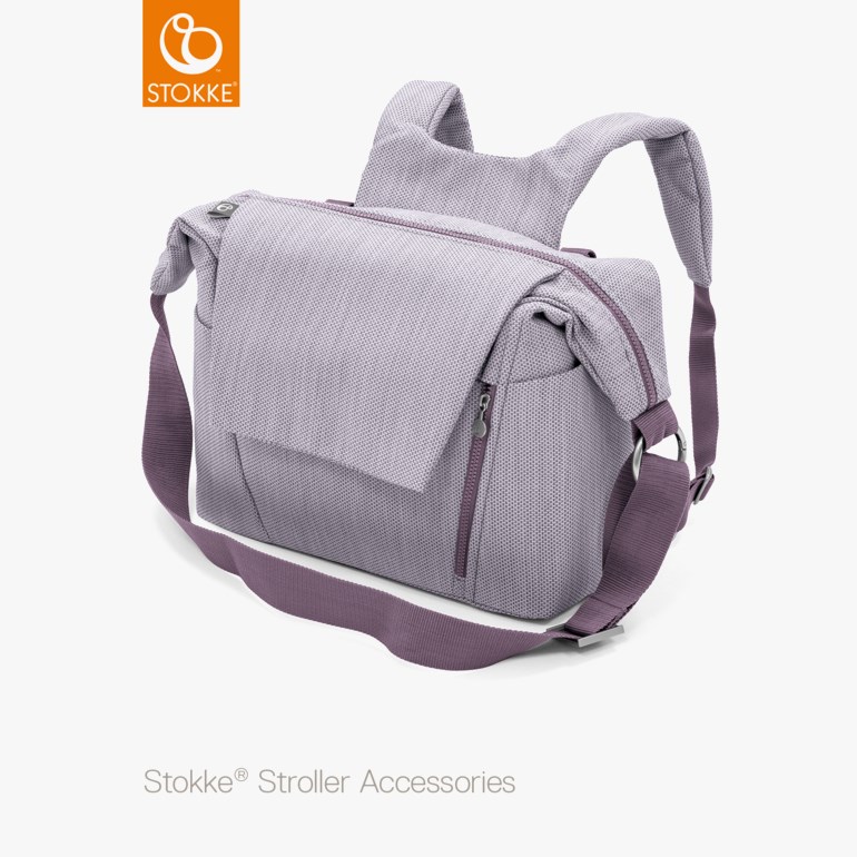Den nyutviklede stellevesken fra Stokke har en genial vri. Den kan festes til barnevognen eller brukes som skulderveske eller ryggsekk. Og de avtagbare ringene gjør det lett å justere vesken. Dermed får du enkelt tilgang til babyutstyret ditt. Vesken har mange lommer i forskjellig størrelse, blant annet en praktisk vanntett sidelomme. Stellematten er plassert i sideåpningen, der den er lett tilgjengelig og byr på ekstra polstring. Det følger også med en avtagbar, mindre stellepung.