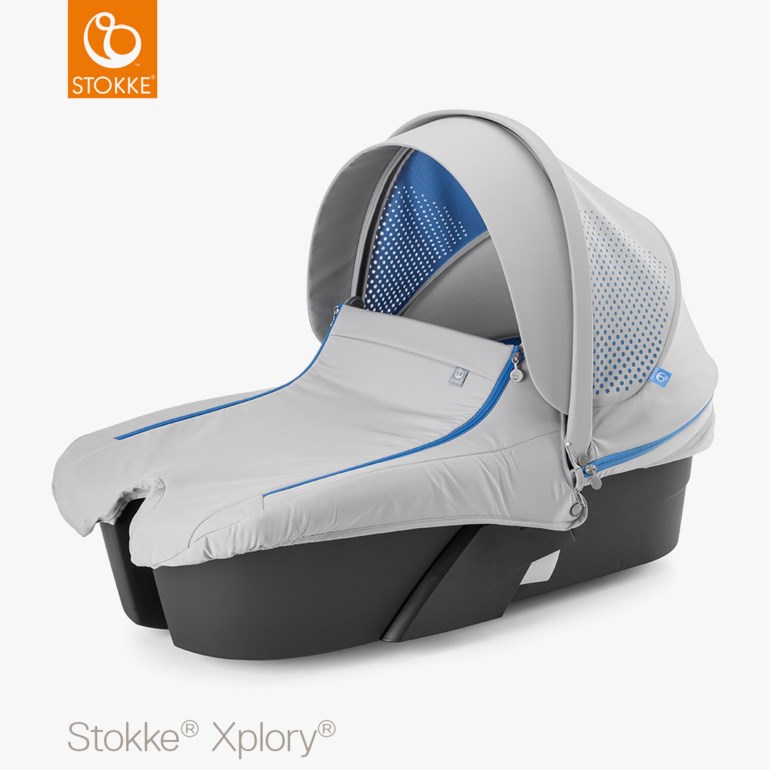 Duobag for Stokke ® Xplory. Hardplast trukket med myk tekstil, god ventilasjon. Madrass med trekk. Bærehåndtak skjult i lommer på sidene. Man veksler enkelt mellom duobag og sportsdel ved bare et klikk.