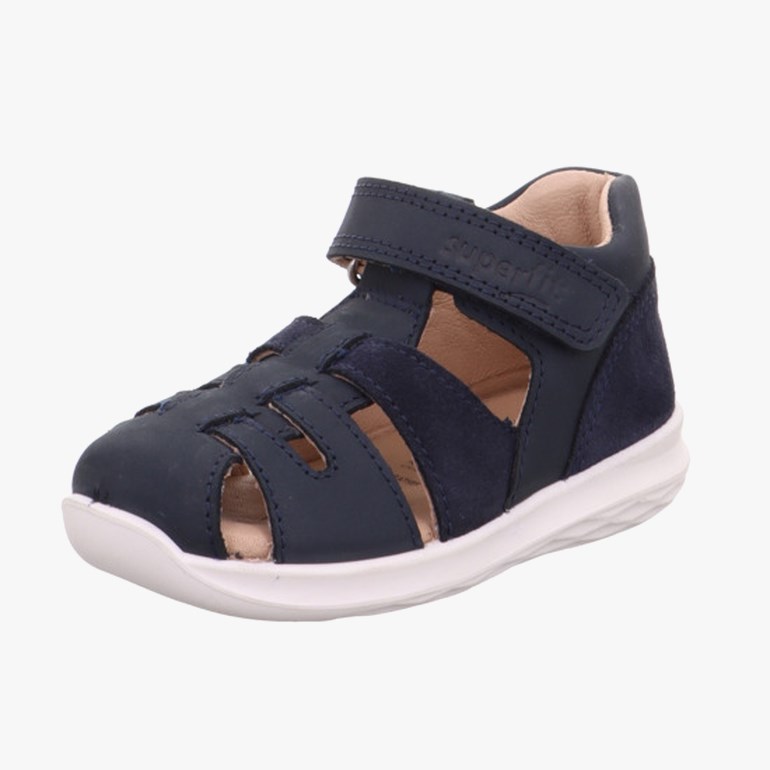Bumblebee sandal fra Superfit, med semsket detalj og enkel borrelåslukking. Sålen er anti-skli og spesielt laget for små barneføtter. En meget lett og fin sandal for de minste.