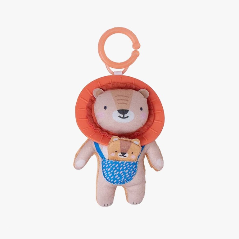 Denne løven lager en koselig ranglelyd når du rister på den og er super underholdning for de aller minste. Den har fine farger og ulike teksturer og former, og du finner også en liten løveunge på magen. Heng den enkelt i vognen eller over sengen ved hjelp av den medfølgende kroken.