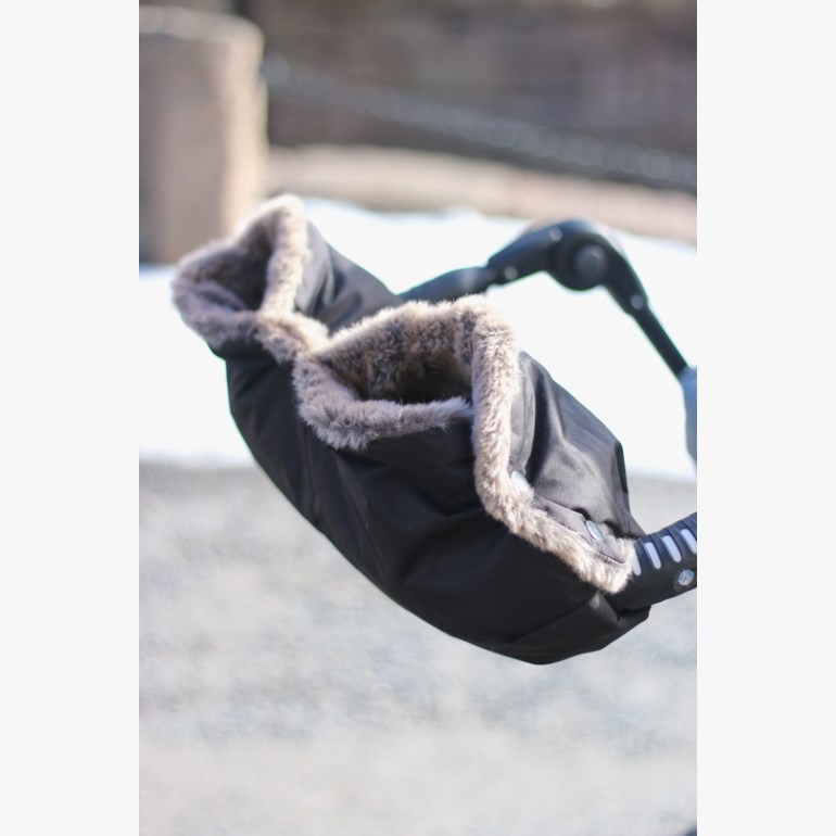 Vognmuffen festes på håndtaket av vognen og varmer hendene dine.