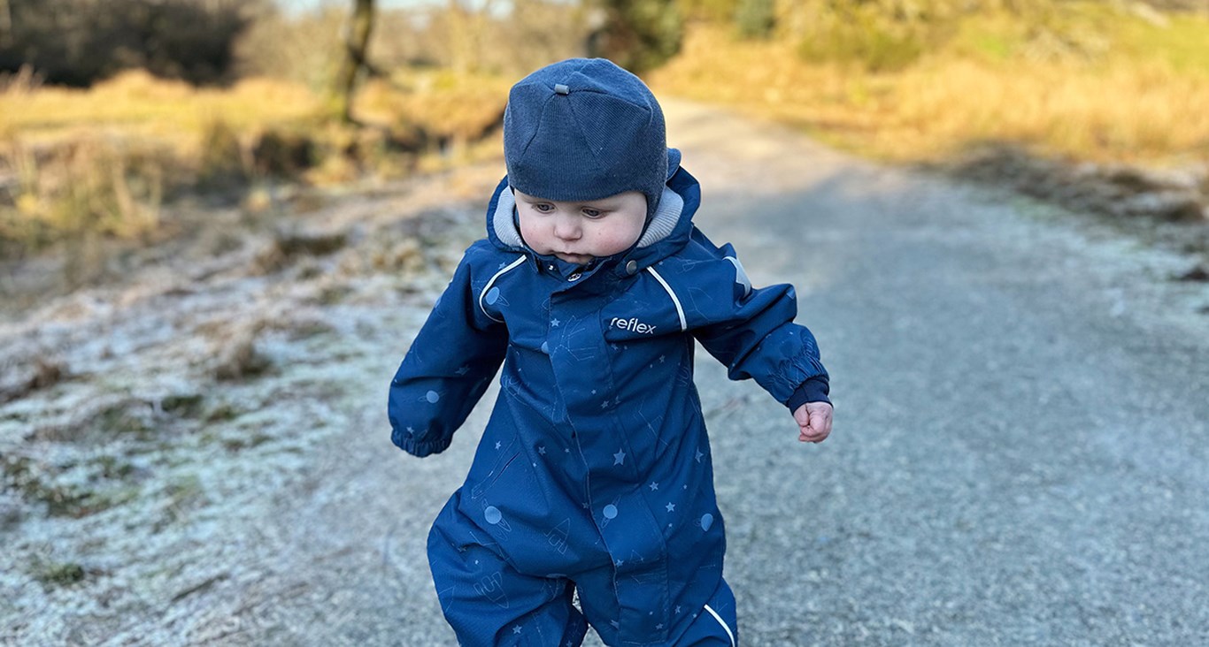 Når babyen blir mer aktiv og nysgjerrig på verden rundt seg, er det viktig med klær som gir bevegelsesfrihet og beskytter mot vind og fukt.