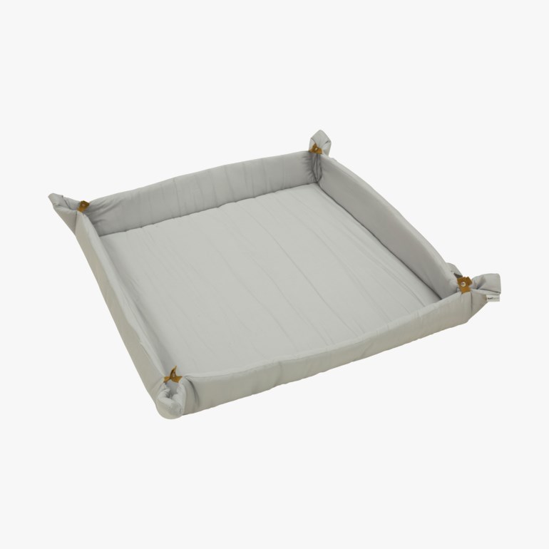 Hennie leketeppe m/ polyester fyll. Håndtak og stropper med borrelås til å rulle sammen og bære lekketeppet.Trykknapp i hjørnene på brune klaffer. Kan også brukes i lekegrind 100x100 eller 80x80. Finnes kun i denne størrelse og farge. Tørkes av med fuktig klut. Oeko-Tex Standard 100.