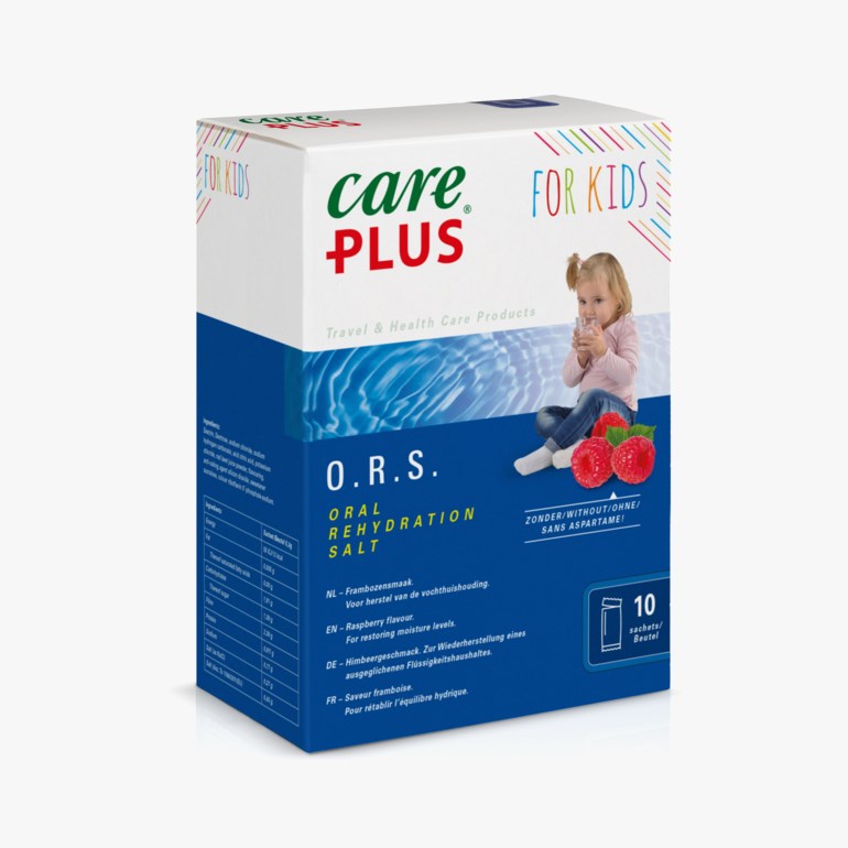 Saltløsning til bruk ved dehydrering og/eller diaré. Hører hjemme i alle førstehjelpsskrin! - Gjenoppretter balansen og hjelper kroppen til å raskere få igjen kreftene ved akutt diare eller væsketap. - Inneholder 10 poser med en vannoppløselig glukose- og saltoppløsning med bringebærsmak. - Veier kun 5,7 gram hver. - Bør finnes i alle ferievesker og førstehjelpssett.