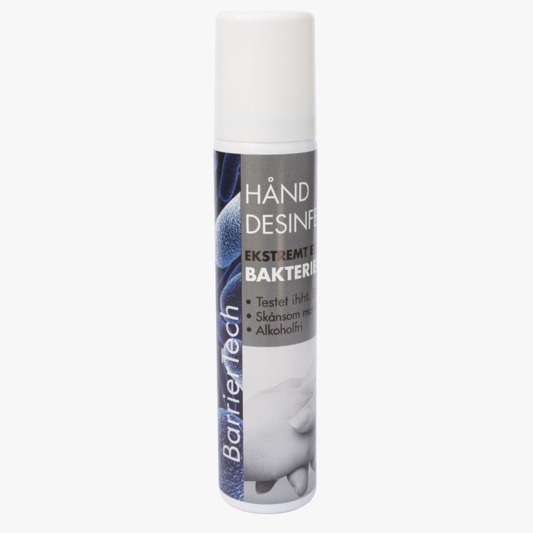 Håndskum fra BarrierTech er et desinfeksjons skum uten alkohol, slik at det forhindrer uttørking av hender. Det er langtidsvirkende, mens alkoholbaserte produkter fordamper nesten umiddelbart og etterlater ingen beskyttelse straks det har tørket, samt at hendene kan tørkes ut etter mye bruk. Noe som kan gi plager som atopisk eksem osv. - Forhindrer uttørking av hender. - Langtidsvirkende. - Mildt for små barnehender. - 90 ml.