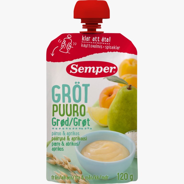 Denne spiseklare grøten med smak av pære og aprikos er et perfekt mellommåltid for små barn. Den kan nytes både kald og varm, og den praktiske klemmeposen gjør den enkel å ta med på tur eller bruke hjemme.