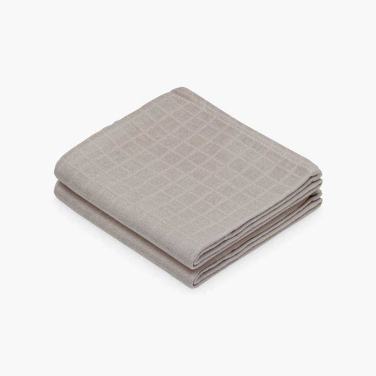 Pakke med to kluter i 100 % økologisk, GOTS-sertifisert bomullsmusselin. Disse klutene er myke mot sart babyhud og kan brukes til amming, bleieskift eller som en beroligende koseklut.
