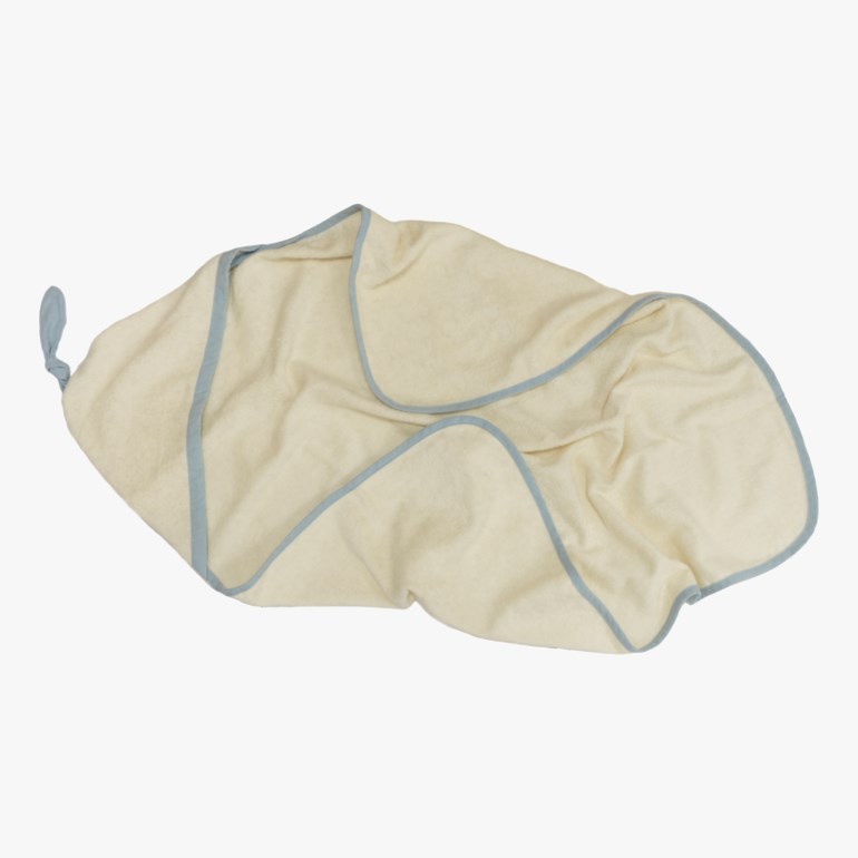 Eline hettehåndkle er laget av 100 % myk bomull, perfekt for å tørke og holde barnet varmt etter badet. Håndkleet har en praktisk hette i ett hjørne, som beskytter hodet og gjør det enkelt å henge opp etter bruk. Den søte knuten på toppen gir det et sjarmerende preg.